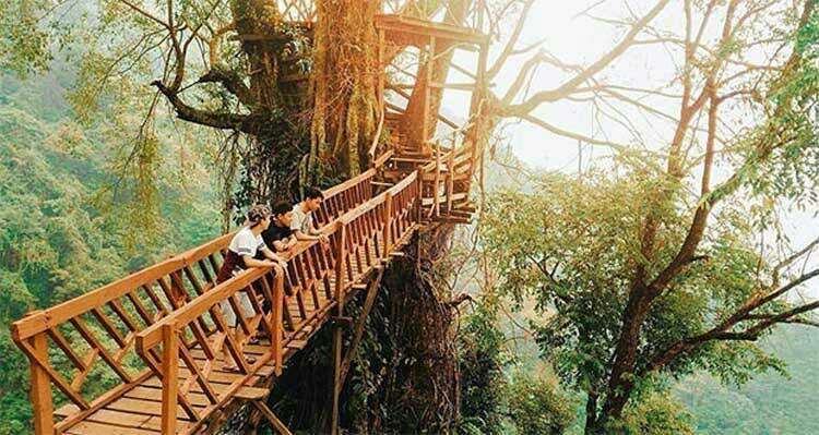 Jika kamu main ke Curug Ciherang jangan lupa mampir ke jembatan kayunya kamu akan takjub dengan keindahan alam di sana.