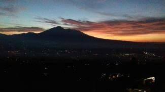 Pada pagi harinya kamu akan disuguhkan dengan pemandangan mentari pagi berwarna jingga di balik tingginyaa GN. Gede. Tepat di belakang bukit juga di suguhi gunung salak yang lebih tepatnya di puncak manik. karena Gn. Salak itu sendiri terdiri dari berbagai puncak dan salah satunya puncak manik.